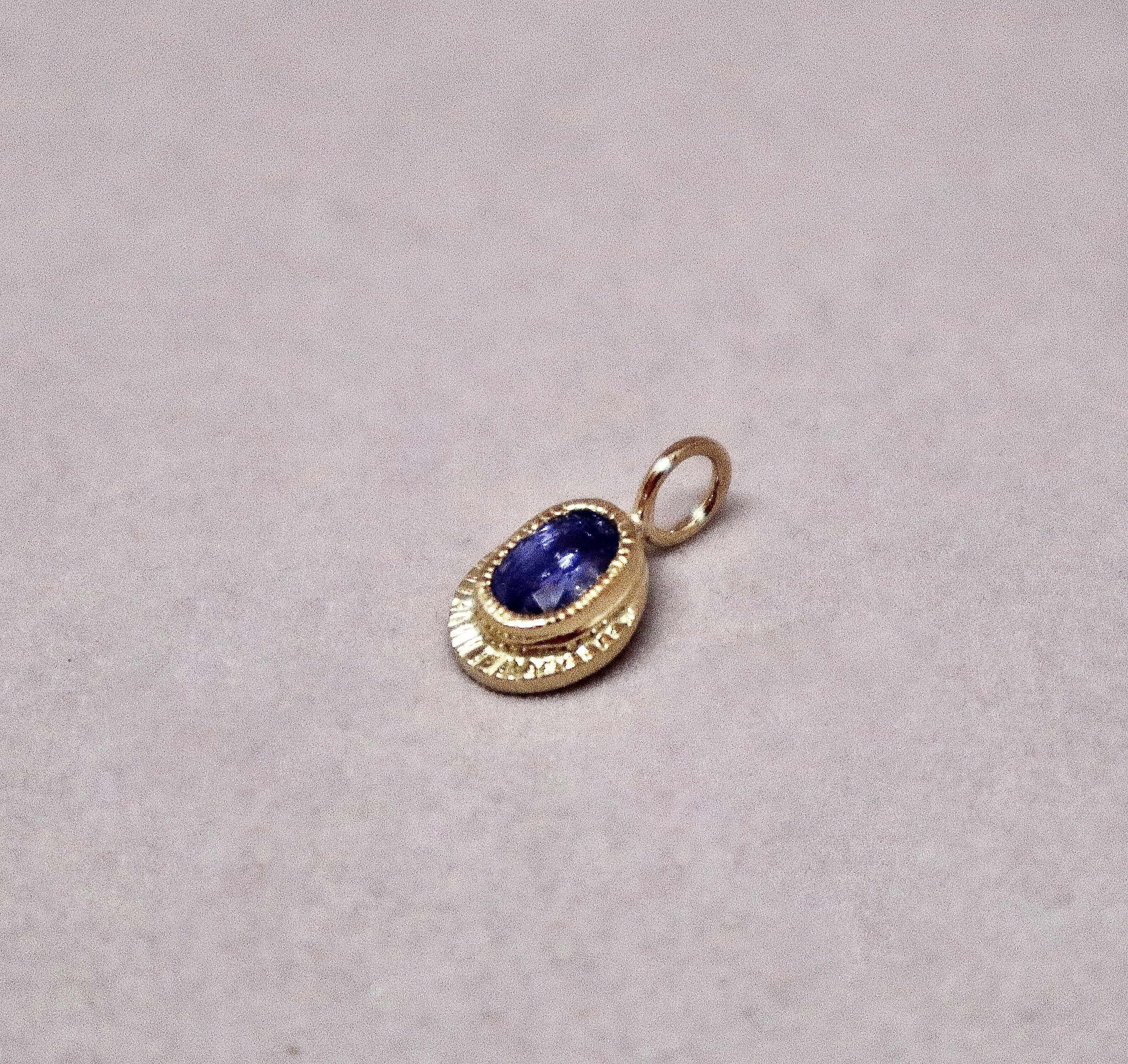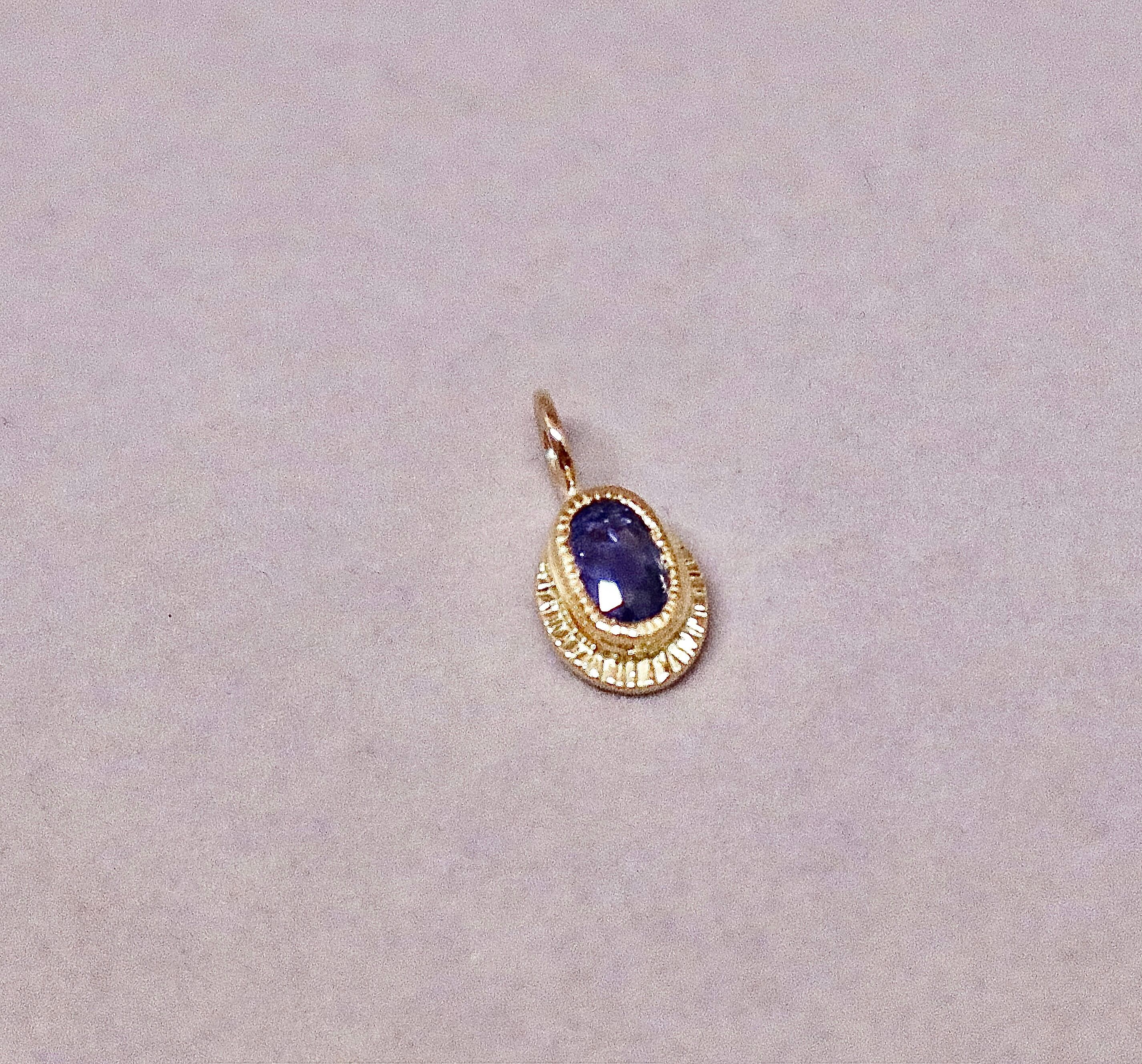 留めにくい形のルースですが色にひかれて仕入れておいた小さなサファイアです。